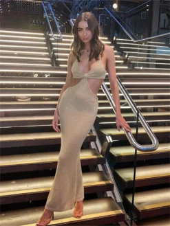 Women Long Dress Cross Halter Backless